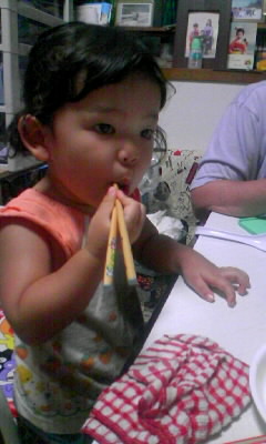 ビックリしたのは、箸使い!今までは掴んで刺す感じだったのが、ちゃんと握ってます。 豆も難なく掴んでたべてます。 上手でしょ?!