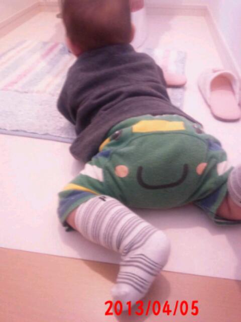 こうゆうズボンはハイハイの時に最大限に可愛さを発揮する。