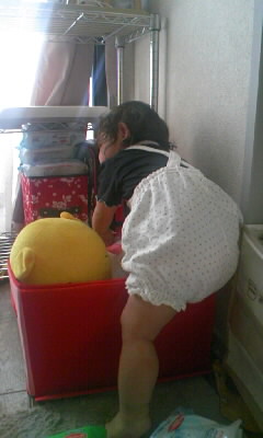 私が洗濯物を干していると、ガシャーン!!っと何かが倒れる音が!