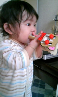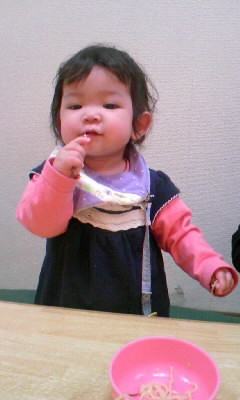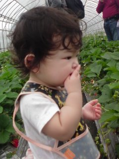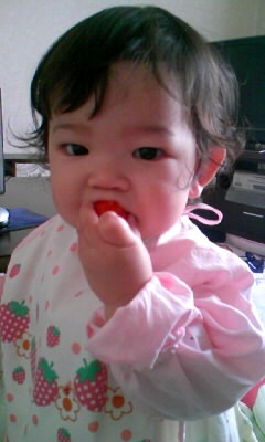 まずは。。。最近果物大好きになった花帆に、安売りしていたイチゴをあげてみました。