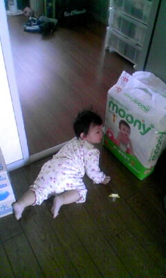 今日は!自分で現寝室→旧寝室→キッチンまでハイハイして起きてきました。