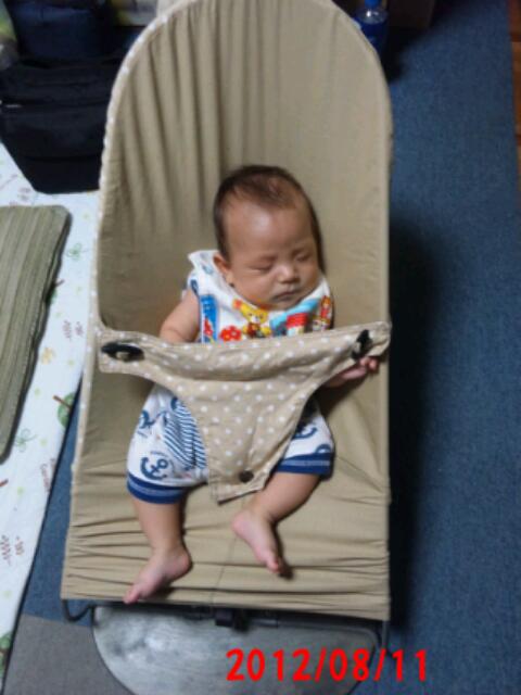 早速座らせたら、始めはちょっと渋い顔しましたけどしばらくしたら寝たw