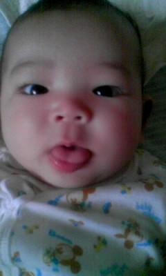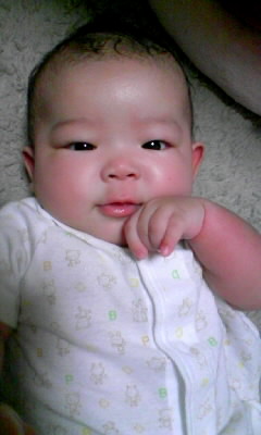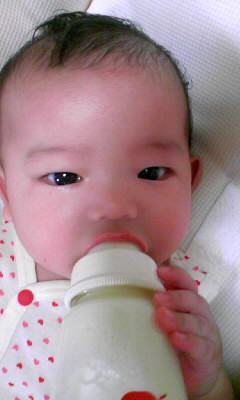 ミルク飲むとき、片手が哺乳瓶を持ってます。