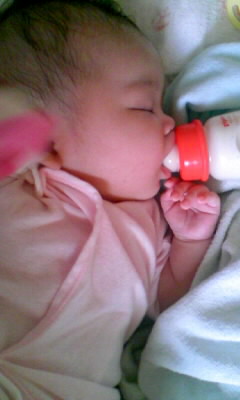 飲みながら寝ちゃっても、手が哺乳瓶にw