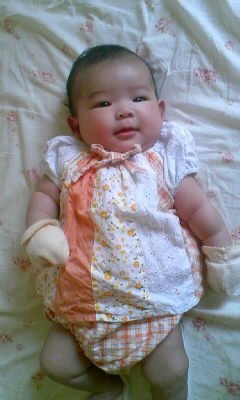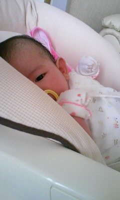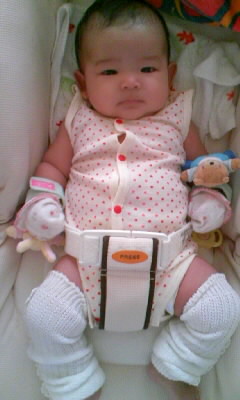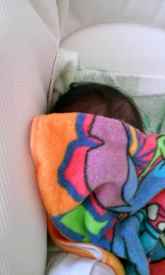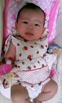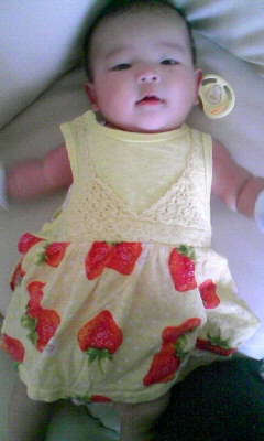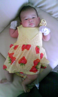 今日は暑いのでノースリーブのロンパース1枚でw