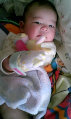 その後に風で揺れるカーテンを手足バタつかせながら必死で見てました ((*´∀`))ウキャキャ