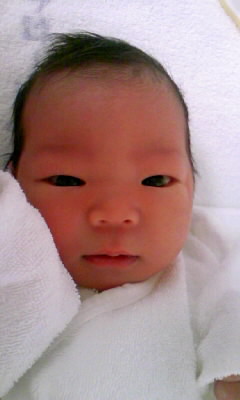 産まれる瞬間6:16→いきみが目茶苦茶長くて息がつづかない~ともう一度いきむ。なんか熱っついものが股からでてきた!と思ったら産まれてました。体は綺麗で脂肪の固まりとかついてなかったと思います。 訳も分からないうちにへその緒切られてました。ご主人タマ退室